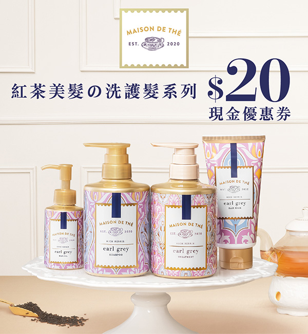 購買任何紅茶美髮の洗護髮產品系列,可於指定時間內作HK$20使用。